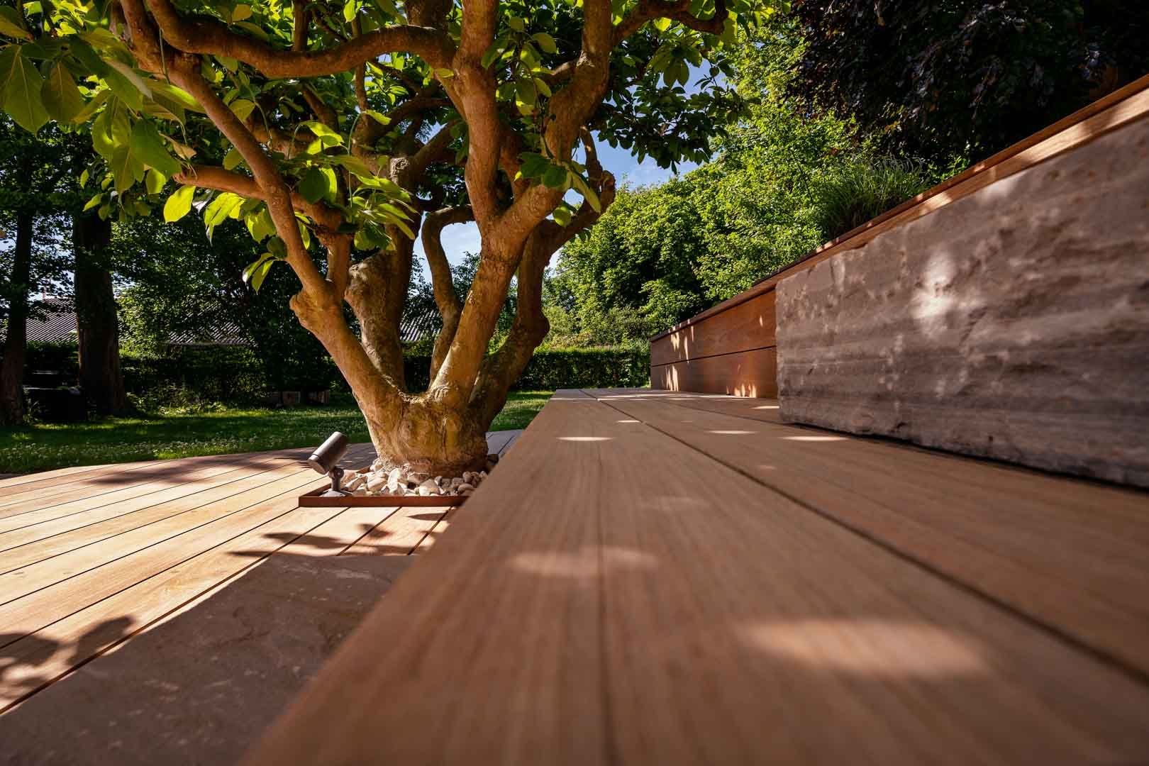 Se det færdige resultat med en 156 m2 lækker Ipéterrasse for Annemette i Vedbæk. Haveanlægget er designet af Tor Haddeland fra Designhaver.dk. En terrasse med poolen som centrum hvor sauna og den spanske trappe giver mange muligheder afslapning og nydelse.