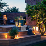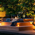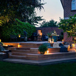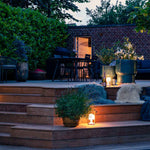 Til slut proppes og slibes terrassen. Lys tilsluttes og stentrin placeres.