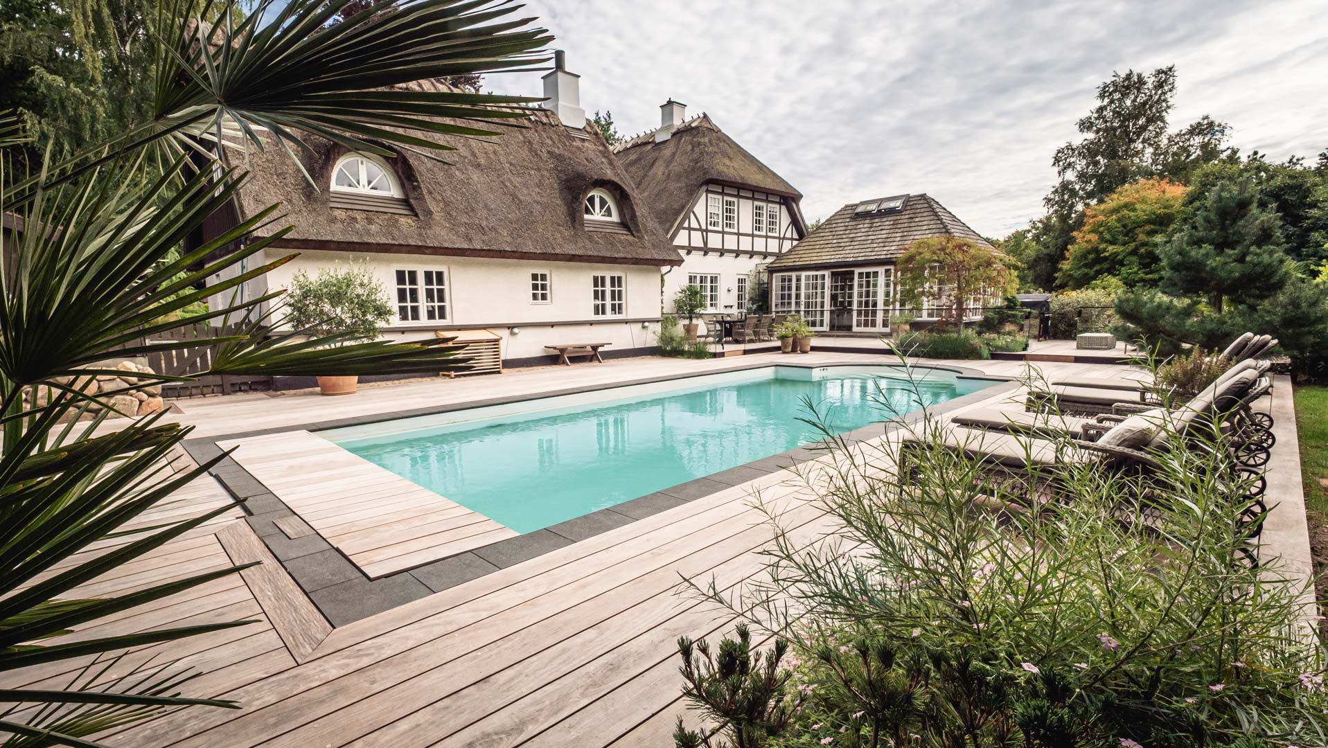 Terrasser med pool og naturvand