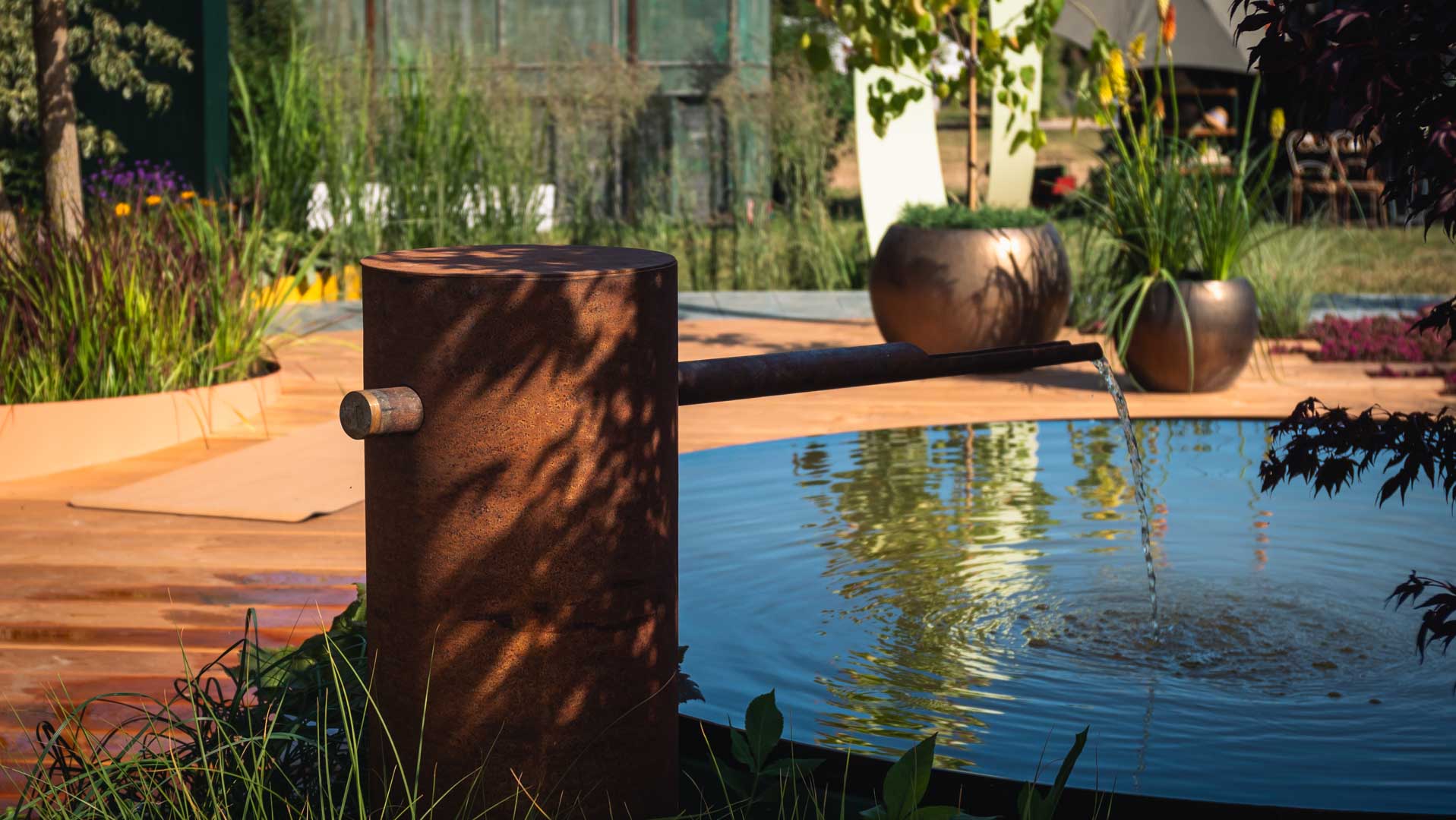 Se det færdige resultat med en 156 m2 lækker Ipéterrasse for Annemette i Vedbæk. Haveanlægget er designet af Tor Haddeland fra Designhaver.dk. En terrasse med poolen som centrum hvor sauna og den spanske trappe giver mange muligheder afslapning og nydelse.